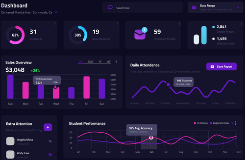 With our advanced tracking and analytics capabilities, instructors can effortlessly monitor and support their students' progress in terms of speed, accuracy, power, flexibility, and endurance. Stay informed and provide personalized guidance to help your students excel.